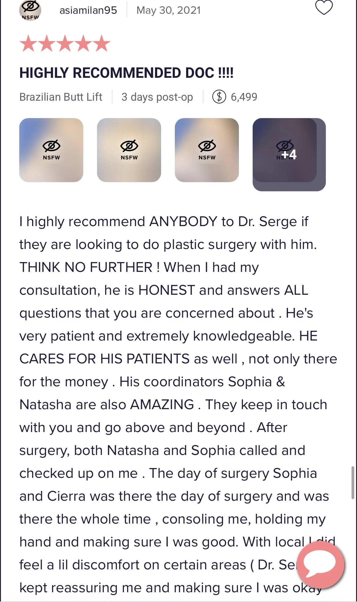Body (360 Degree liposuction, Brazilian Butt Lift, and tummy tuck).